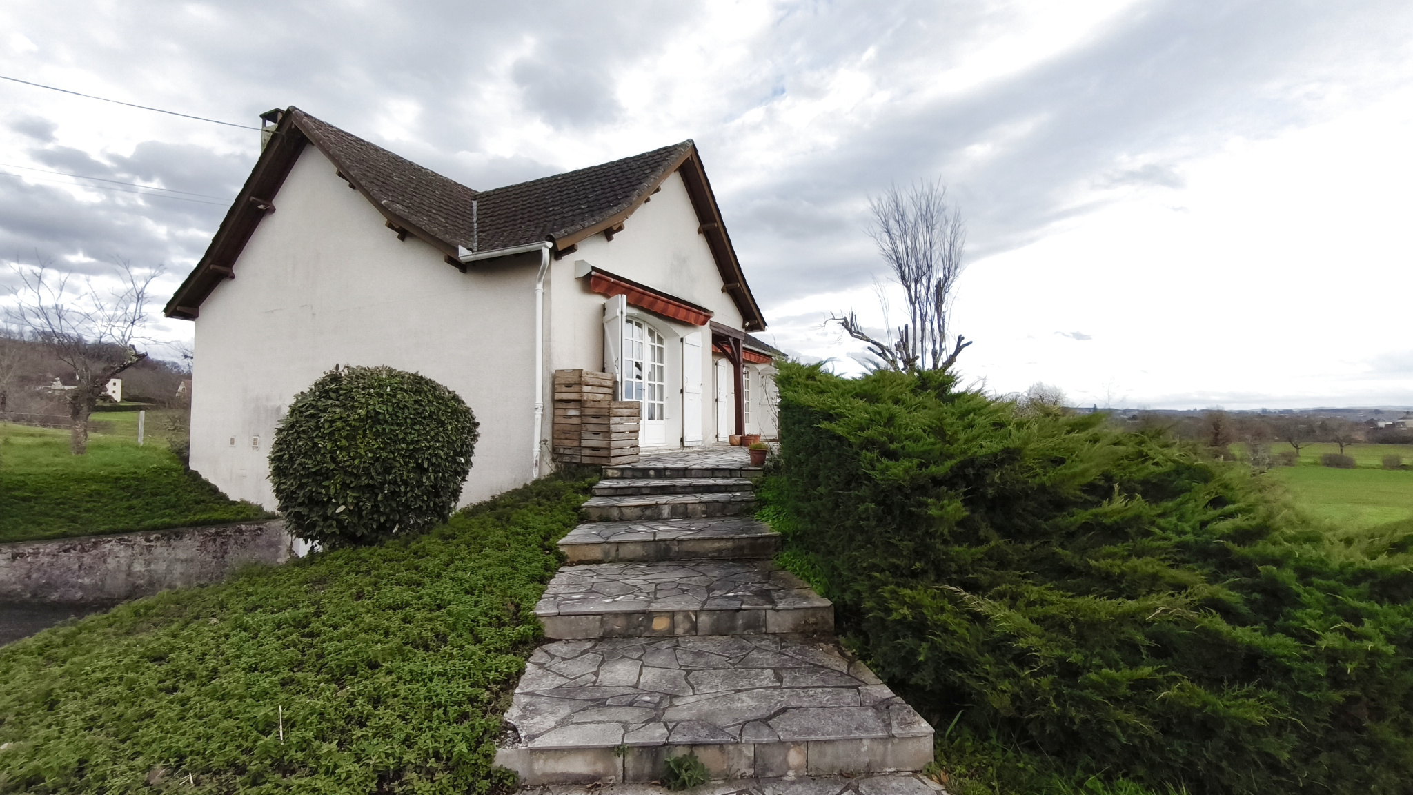 La maison et sa terrasse extérieure sont exposées plein Sud et bénéficient d'une magnifique vue sur la vallée et le village.