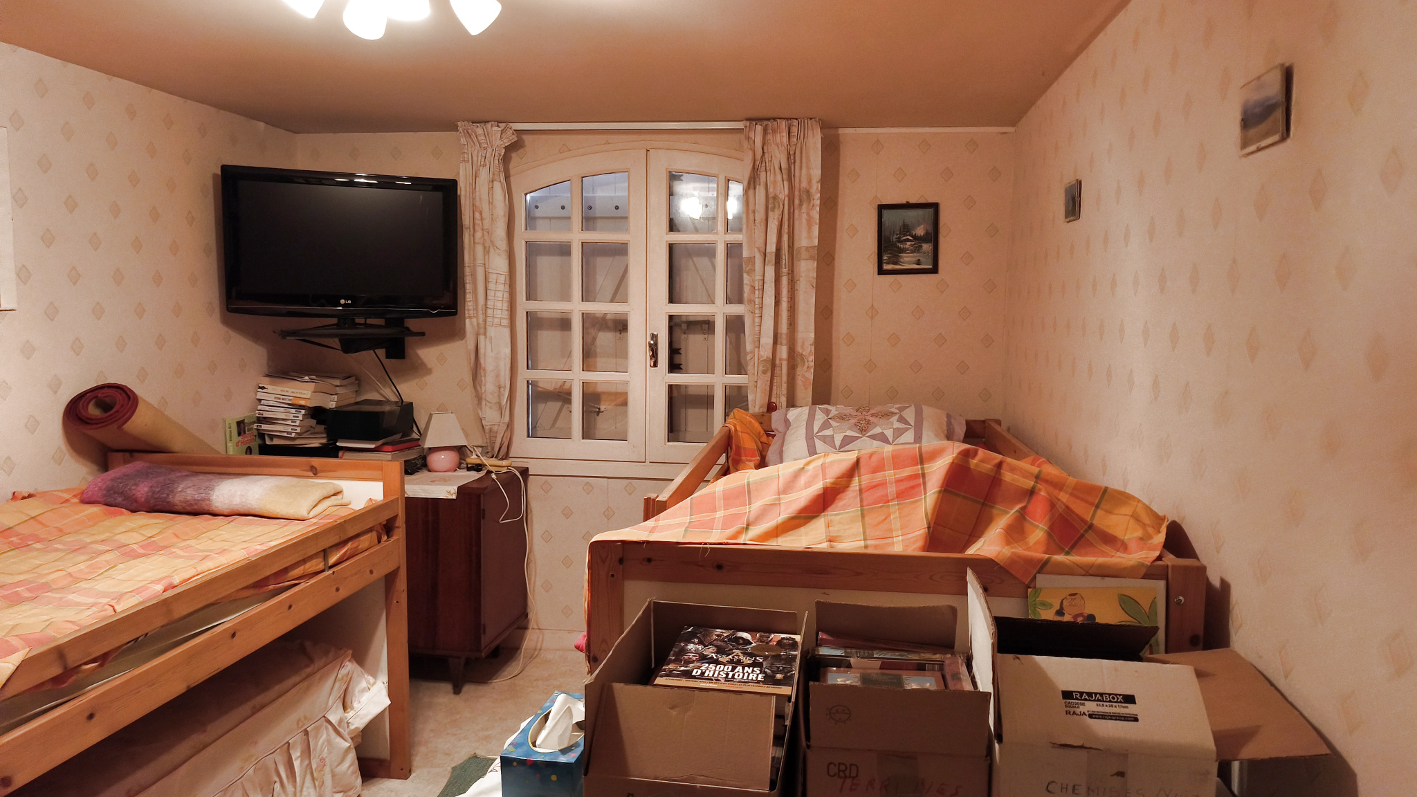 - En rez de jardin : une entrée sur salon/salle à manger, une cuisine séparée, deux chambres, une salle d'eau et un toilette
