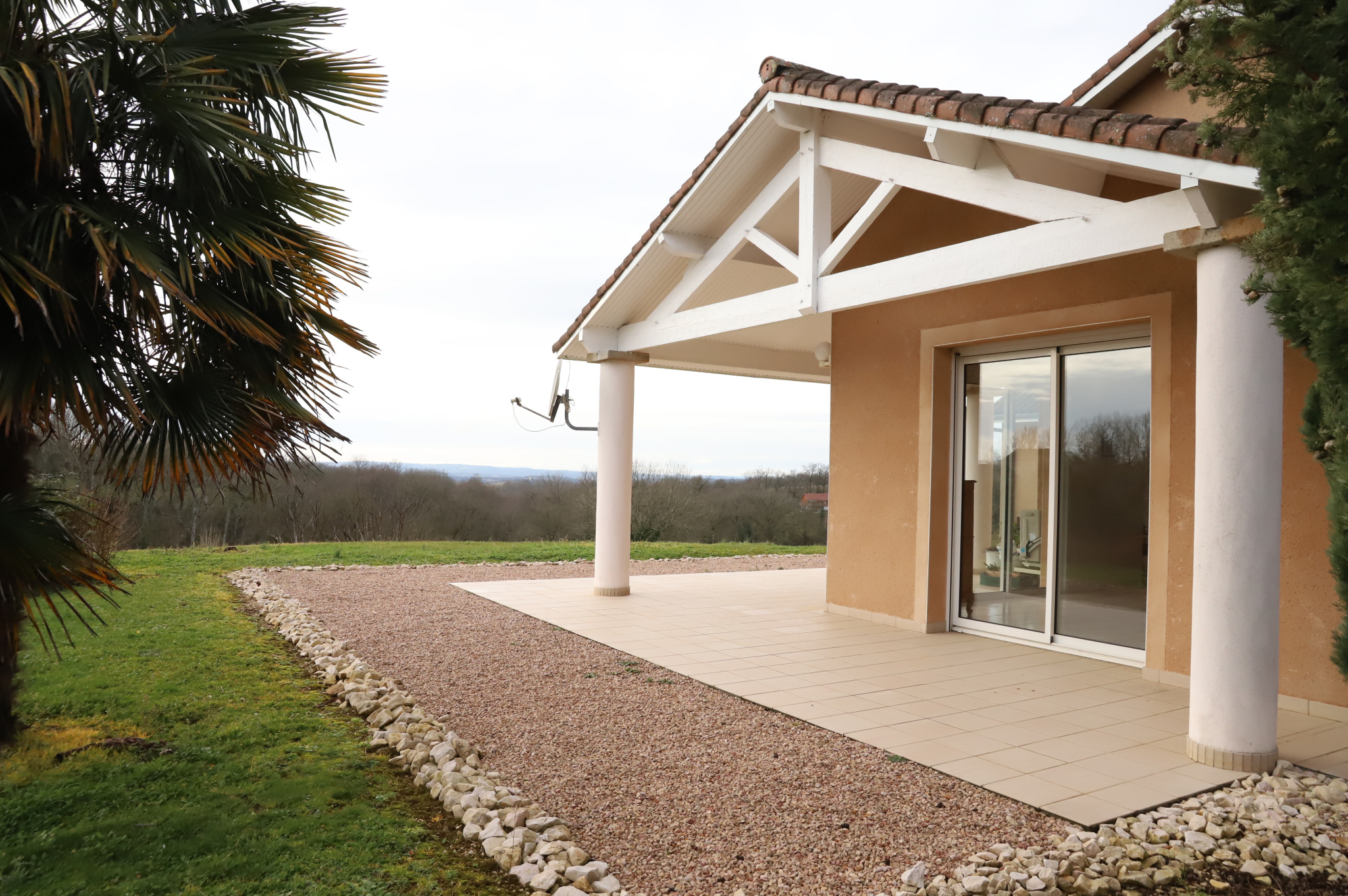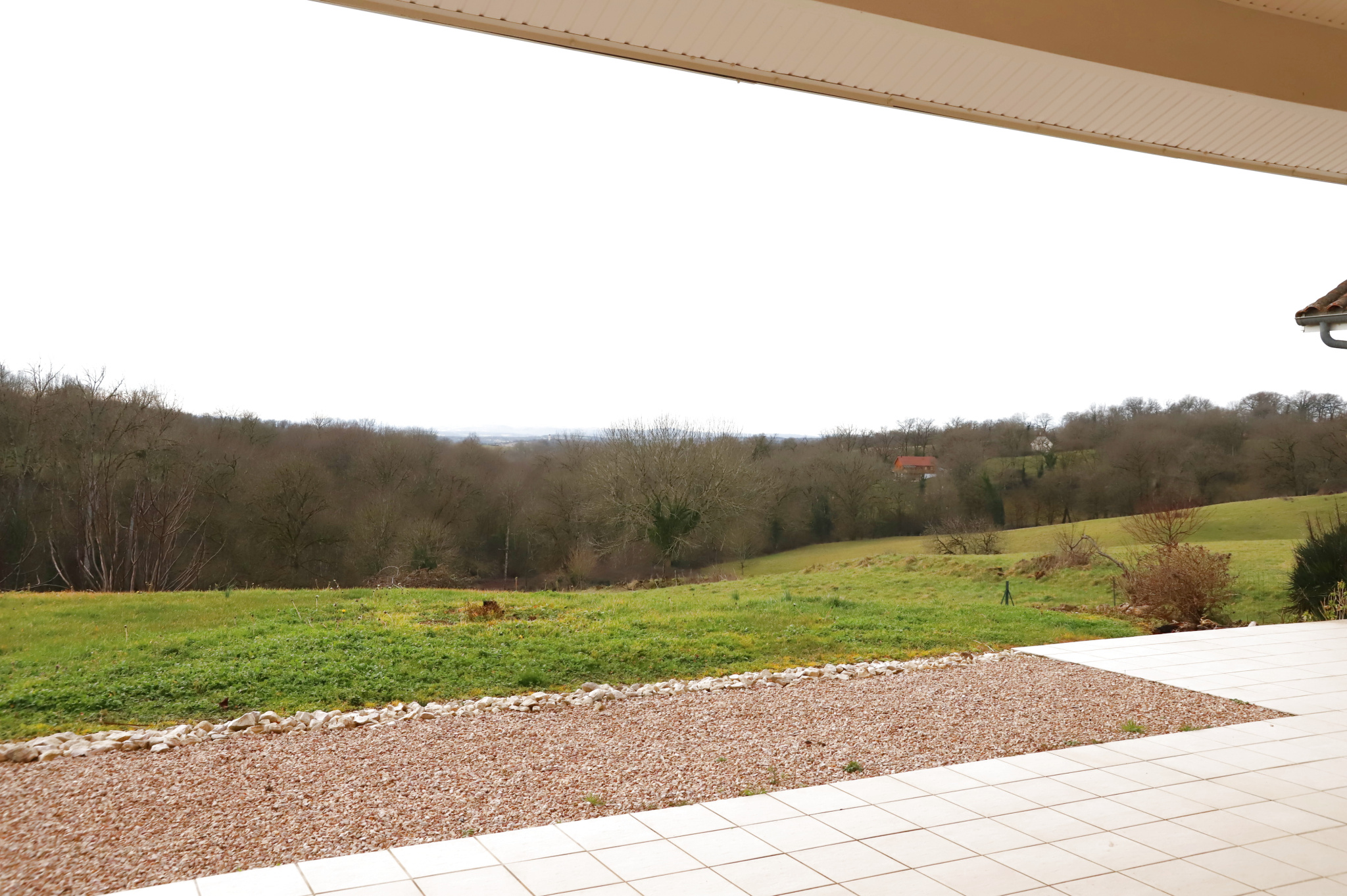 La terrasse, entièrement carrelée, offre une très belle vue sur la campagne environnante.