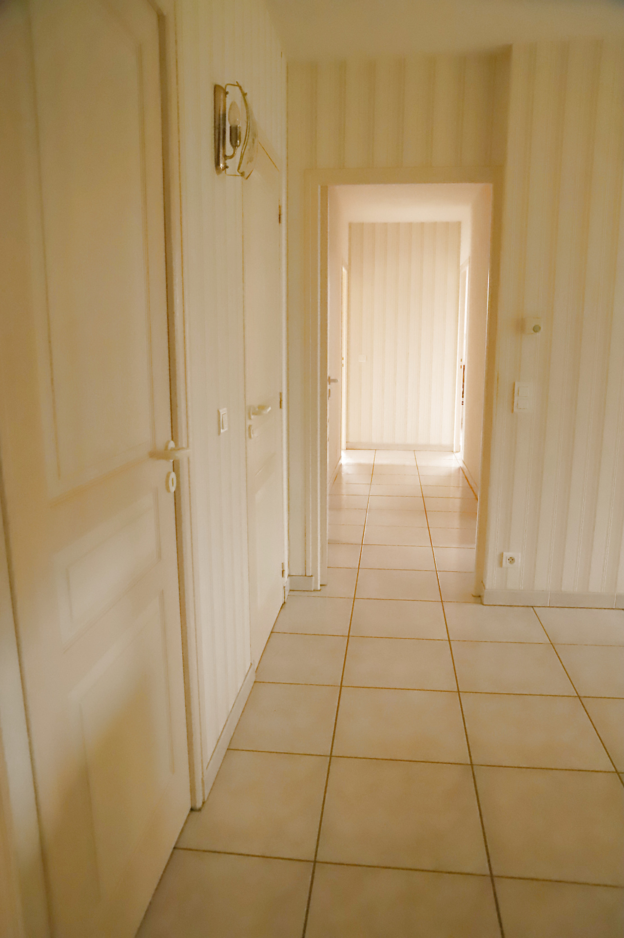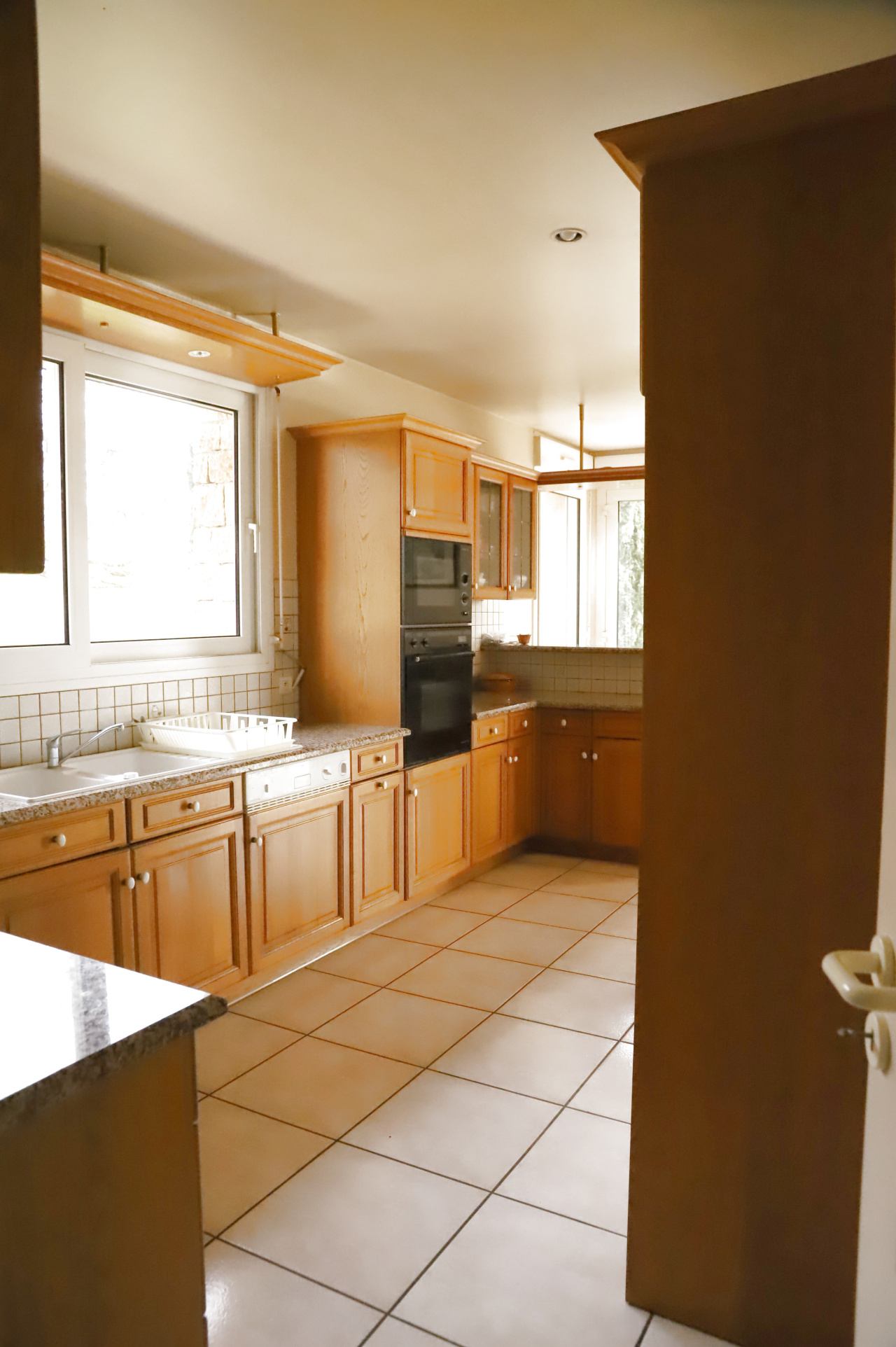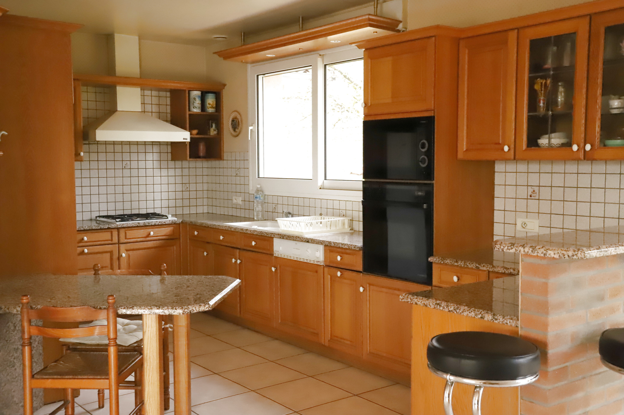 Sur le côté de l'entrée, on accède à une grande cuisine équipée, précédée d'une kitchenette/cellier et ouverte sur l'extrémité du séjour.