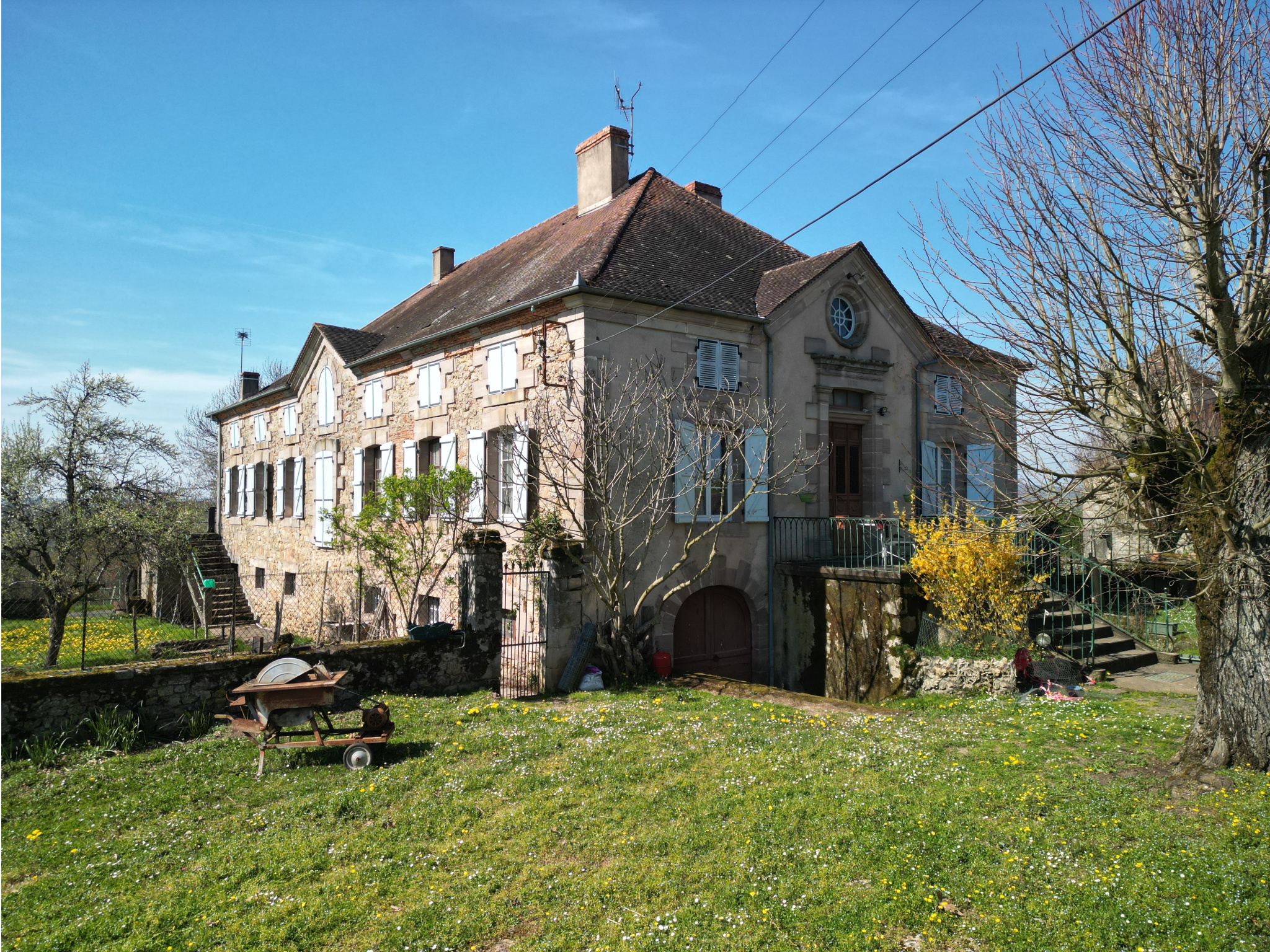 Dans le Sud-Corrézien, à quelques encablures de la rivière Dordogne, cette grande demeure du 19ème est bâtie en pierres, couverte en tuiles plates et élevée en totalité sur caves.